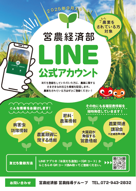 2025年9月より、JA大阪中河内 営農経済部の公式LINEが開設されました!