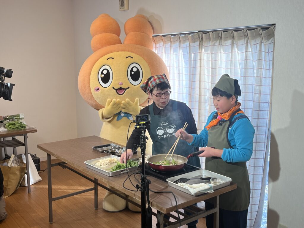 野菜が苦手なお子さんもおいしく楽しめる、きくなと豚肉を使った「きくブー」を調理しました🍳