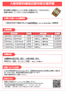 「大阪府肥料価格高騰対策支援金」の支給を行っています。